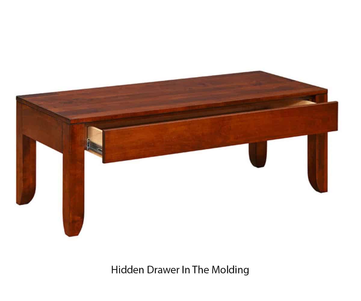 • Hidden dovetailed drawer in the molding