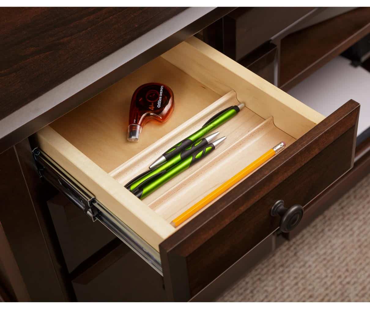 • Top drawer: Pencil drawer with a pencil tray